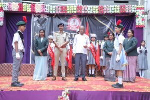 अतिथियों का स्वागत पुष्प माला एवं पुष्प गुच्छ के साथ विद्यालय के प्रबंधक विनीत कुमार त्रिवेदी द्वारा किया गया। इसके बाद चुने गये सीनियर हेड बॉय रणवीर ठाकुर एवं सीनियर हेड गर्ल नियति तिवारी तथा जूनियर हेड बॉय मुकुल बागवान एवं जूनियर हेड गर्ल दीक्षा बामनिया के नेतृत्व में उनकी चुनी गई केबिनेट टीम के सदस्य मार्च पास्ट करते हुये मंच पर पहुंचे जहां अतिथियों द्वारा उनके पद का बेज लगाकर उन्हें पदभार ग्रहण करवाया गया एवं पद तथा कर्तव्यनिष्ठा की शपथ दिलवाई गई। सीनियर केबिनेट में डिस्पिलिन मिनिस्टर शिवानी चौरसिया, स्पोर्ट्स मिनिस्टर राजदीप ठाकुर, एजुकेशन मिनिस्टर निधि सांवरिया, क्लीनीनेस मिनिस्टर अनामिका मालवीय, असेम्बली मिनिस्टर निहारिका ठाकुर एवं कल्चरल मिनिस्टर दिव्यांशी विश्वकर्मा का चयन हुआ इसी प्रकार जूनियर केबिनेट में डिस्पिलिन मिनिस्टर कृतिका मेवाड़ा, स्पोर्ट्स मिनिस्टर नैतिक मेवाड़ा, एजुकेशन मिनिस्टर ज़िकरा शेख, क्लीनीनेस मिनिस्टर रिद्धिमा खत्री, असेम्बली मिनिस्टर प्राची मालवीय एवं कल्चरल मिनिस्टर अनुराधा मेवाड़ा का चयन हुआ।