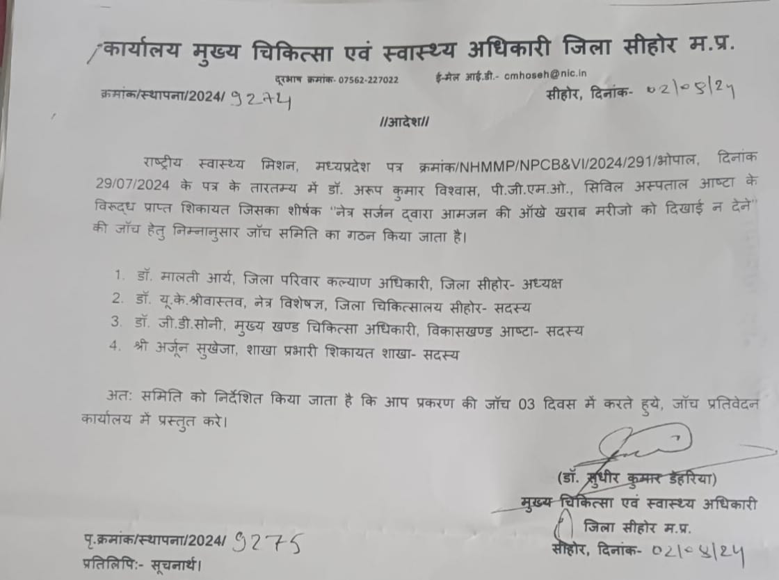*आष्टा – डाक्टरों की 4 सदस्यीय टीम करेगी जांच अरूप विश्वास के कथित डाक्टरी कारनामों की, आंखो के आपरेशन में ठगाए मरीज कर रहे हैं सख्त कार्यवाही की मांग* August 6, 2024 No Comments Read More »